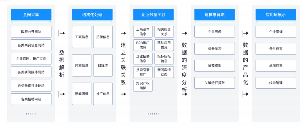 利用大數(shù)據(jù)+AI人工技術(shù)進行全網(wǎng)數(shù)據(jù)采集、清洗加工,智能搭建企業(yè)資料庫,包括企業(yè)工商信息、資質(zhì)、產(chǎn)品、 推廣、企業(yè)電話等...